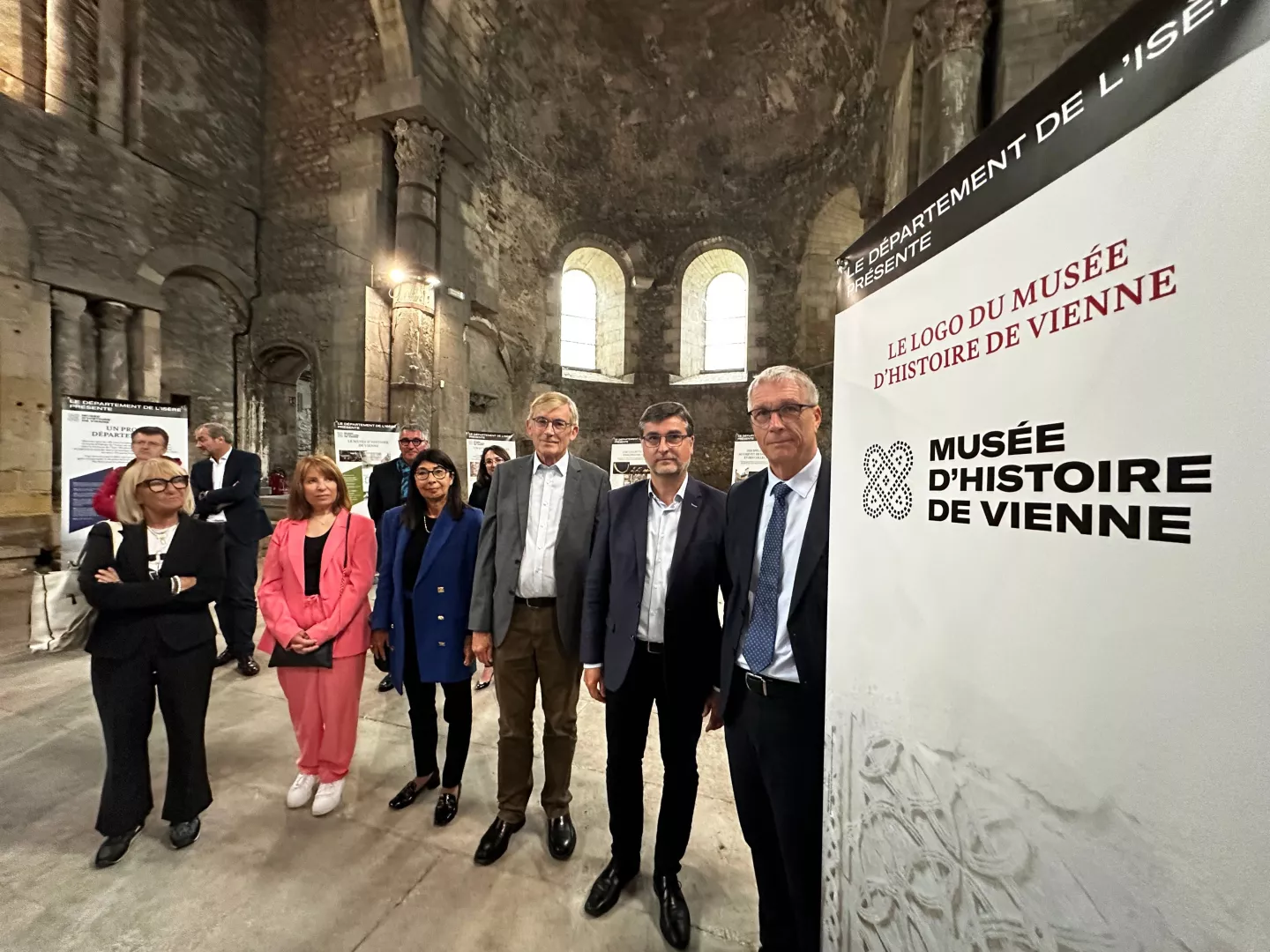Le président du Département Jean-Pierre Barbier a dévoilé  le logo du futur musée d’Histoire de Vienne, en présence du Maire Thierry Kovacs et de Michèle Cédrin, conseillère régionale et première adjointe de la commune.