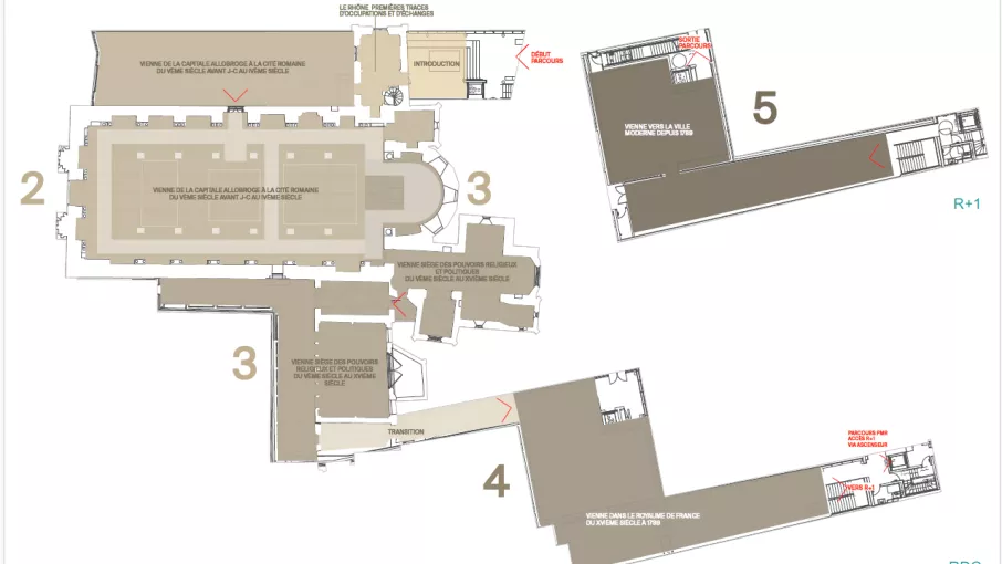 Plan au sol du musée d’histoire de Vienne avec la répartition par séquences