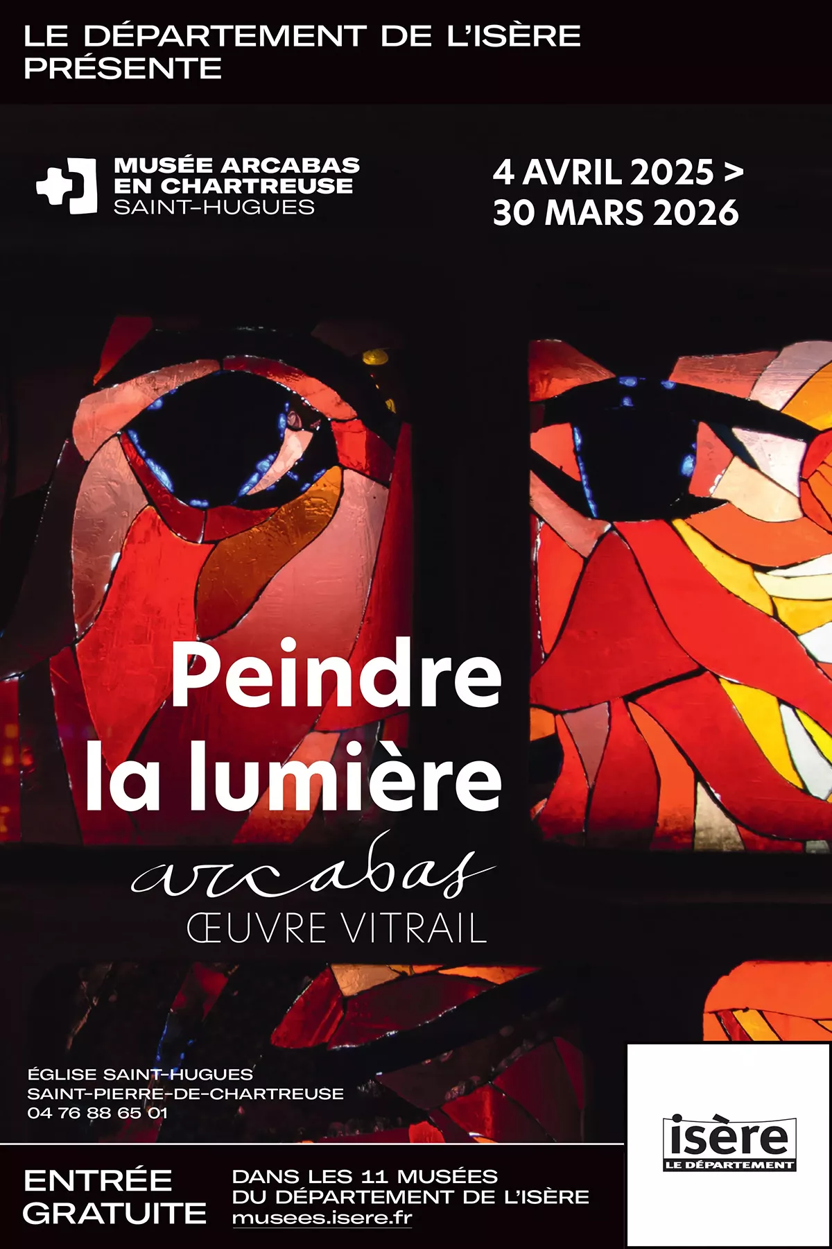 Arcabas s’est intéressé toute sa vie au vitrail qu’il abordait en tant que peintre avant tout. De Saint-Hugues en 1950 aux dernières réalisations du Sacré-Cœur de Grenoble et de Saint-Christophe-sur-Guiers, l’exposition met l’accent sur les maquettes créées par Arcabas et la façon dont elles ont été traduites par les maitres verriers qui l’ont accompagné.
