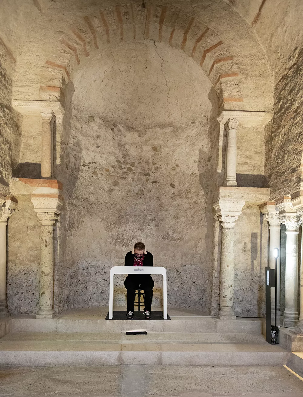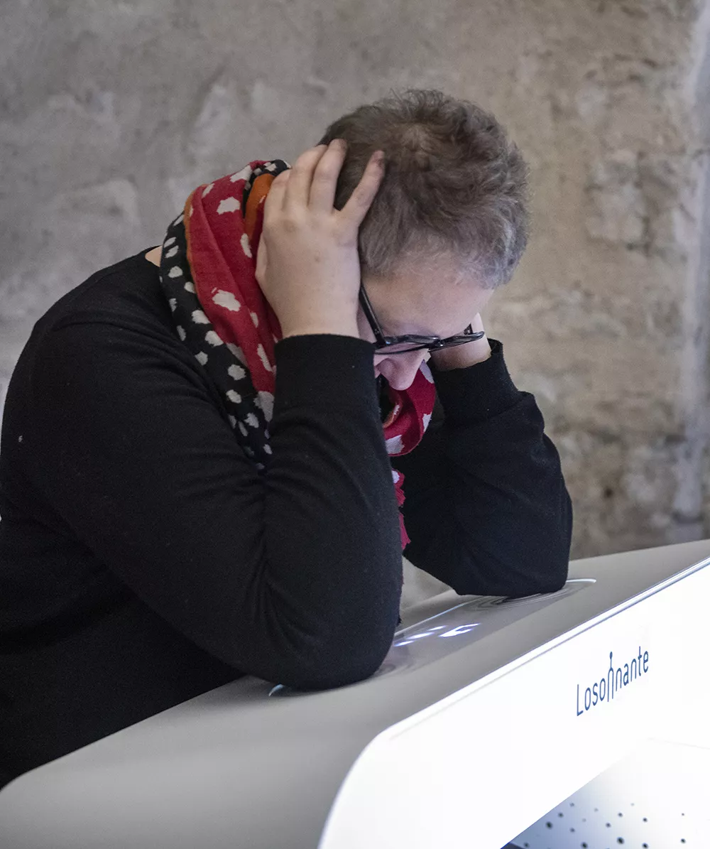 Afin de valoriser et dévoiler cette composition, deux dispositifs interactifs sont installés dans le musée. Losonnante©, un dispositif sonore innovant par conduction osseuse qui permettra d’écouter la composition dans le calme de la crypte et l’arbre à frôler, une oeuvre artistique et sonore créée par la compagnie aKousthéa et installée dans le jardin. Ces installations créent une parenthèse musicale au sein du parcours permanent. Placées au coeur du jardin et de la crypte, des espaces dédiés à la contemplation et au calme, ces installations incitent les visiteurs à se poser et se mettre à l’écoute dans des dispositifs où corps et sons ne font plus qu’un.
