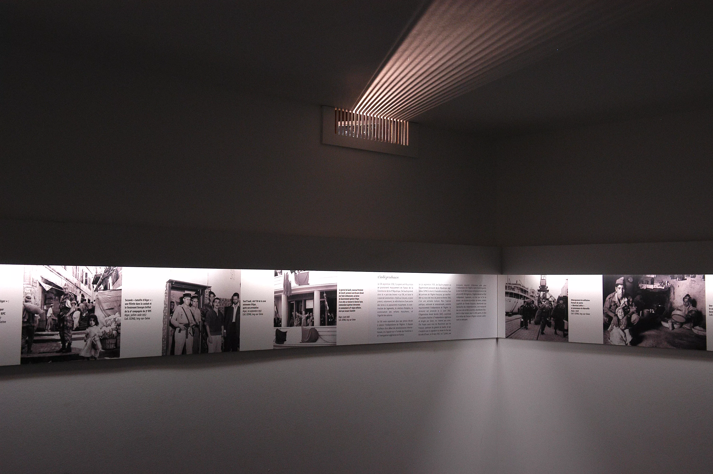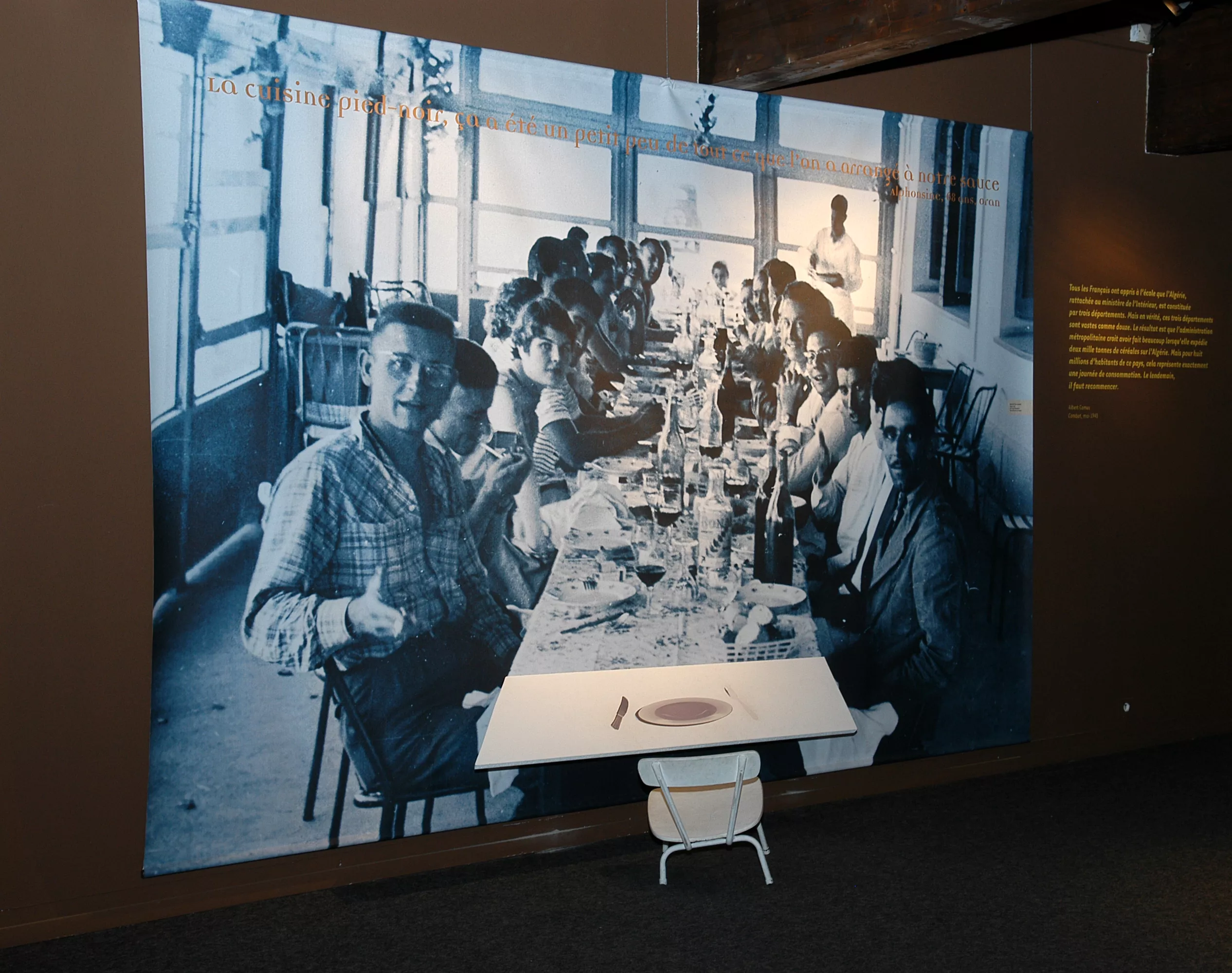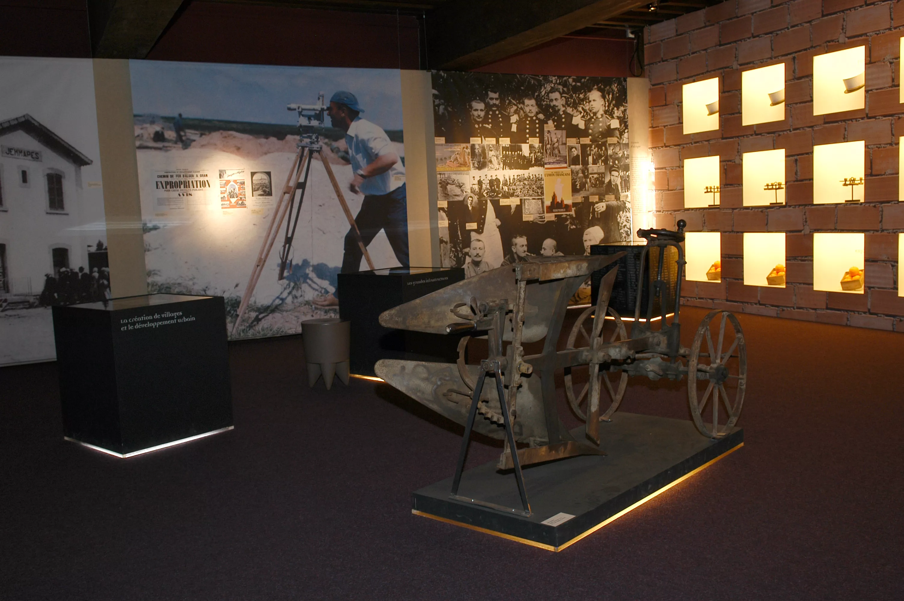 1500 familles dauphinoises partent en Algérie au XIXe siècle. Plus d’un siècle plus tard, leurs descendants de retour en France dans les circonstances dramatiques que l’on connaît, durent recommencer une vie nouvelle, sur une terre qui n’était plus vraiment leur. C’est à partir du vécu de ces Français d’Isère et d’Algérie, à quelque 130 ans d’intervalle, que l’exposition retrace l’histoire de la colonisation puis de la décolonisation. Placée sous le signe du soleil, de la lumière, de la chaleur et de l’ailleurs, la scénographie mobilise le regard, l’ouïe et l’odorat et sollicite chacun des sens participant de la mémoire, jouant tantôt le registre de l’émotion, tantôt celui de la réflexion.