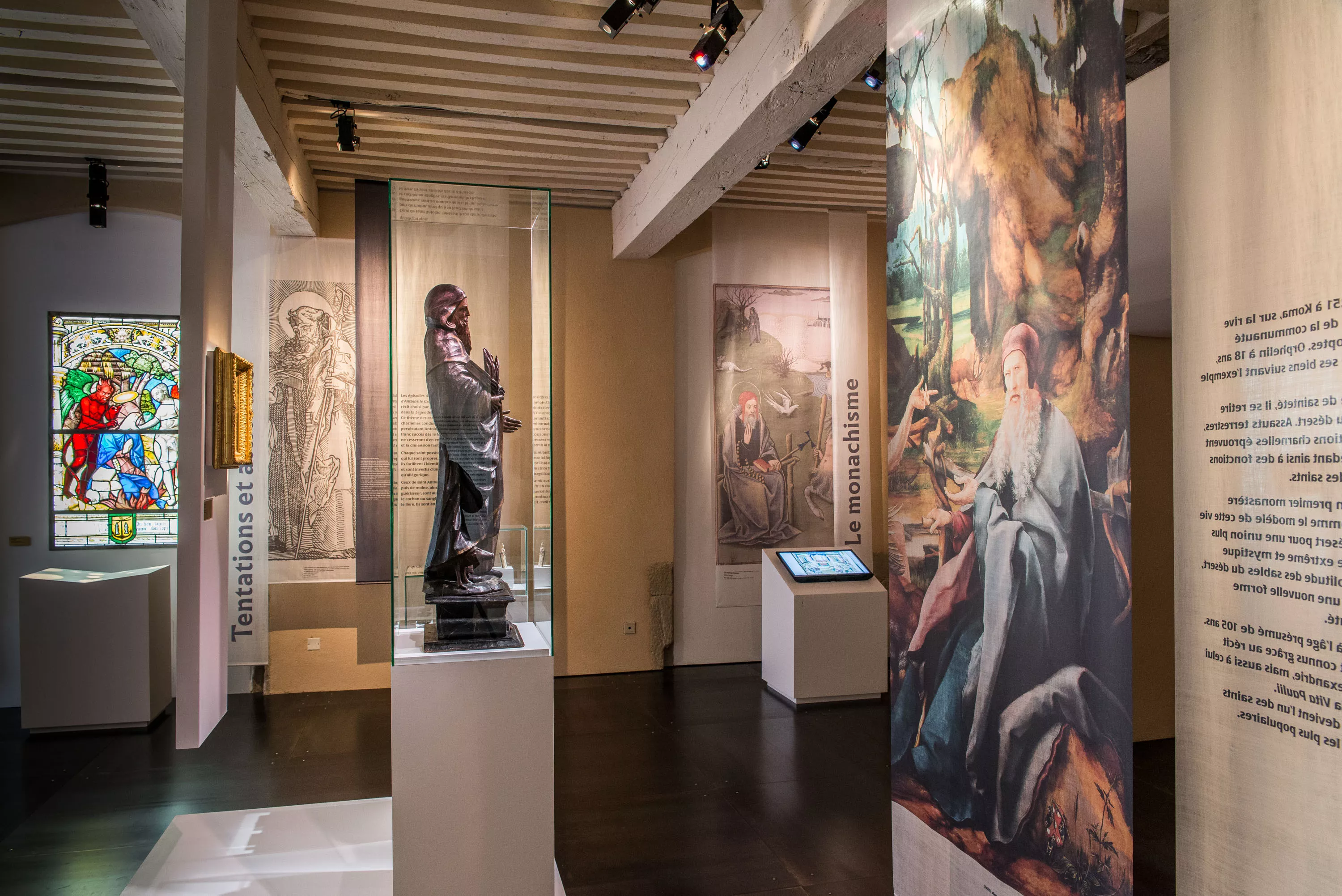 L'exposition permet de comprendre l’extraordinaire histoire des hommes à l’origine de l’Abbaye et du bourg attenant autour des reliques d’Antoine Le Grand.