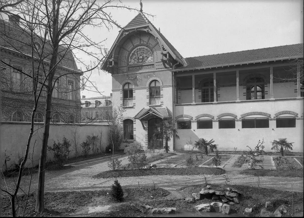 À l'étroit dans les sous-sols de l'Université de Grenoble située place de Verdun, l'Institut de zoologie et de pisciculture intègre le bâtiment en 1910. Un large programme de rénovation et d'agrandissement débute sous la direction de l'architecte Jacques Rome pour accueillir les laboratoires de zoologie rue Hébert et ceux de pisciculture rue Cornélie-Gémond, ainsi qu'une salle d'études comportant des collections de références pour l'enseignement. L'ensemble du site se dote d'un riche décor qui évoque l'activité piscicole. Des bosquets et des bassins consacrés à l'élevage et à la reproduction des poissons viennent agrémenter la cour.