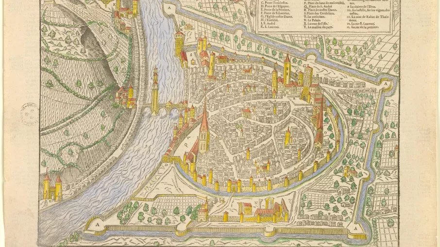 Cularo, l’antique Grenoble, située en bordure de la rive gauche de l’Isère, proche des contreforts du massif de la Chartreuse, était fermée par une enceinte fortifiée. D’une longueur de 2000 mètres environ, composé de murs d’une hauteur de 9 mètres et d’une largeur de 4,50 mètres, ce rempart présentait trente tours défensives et deux portes d’entrée.